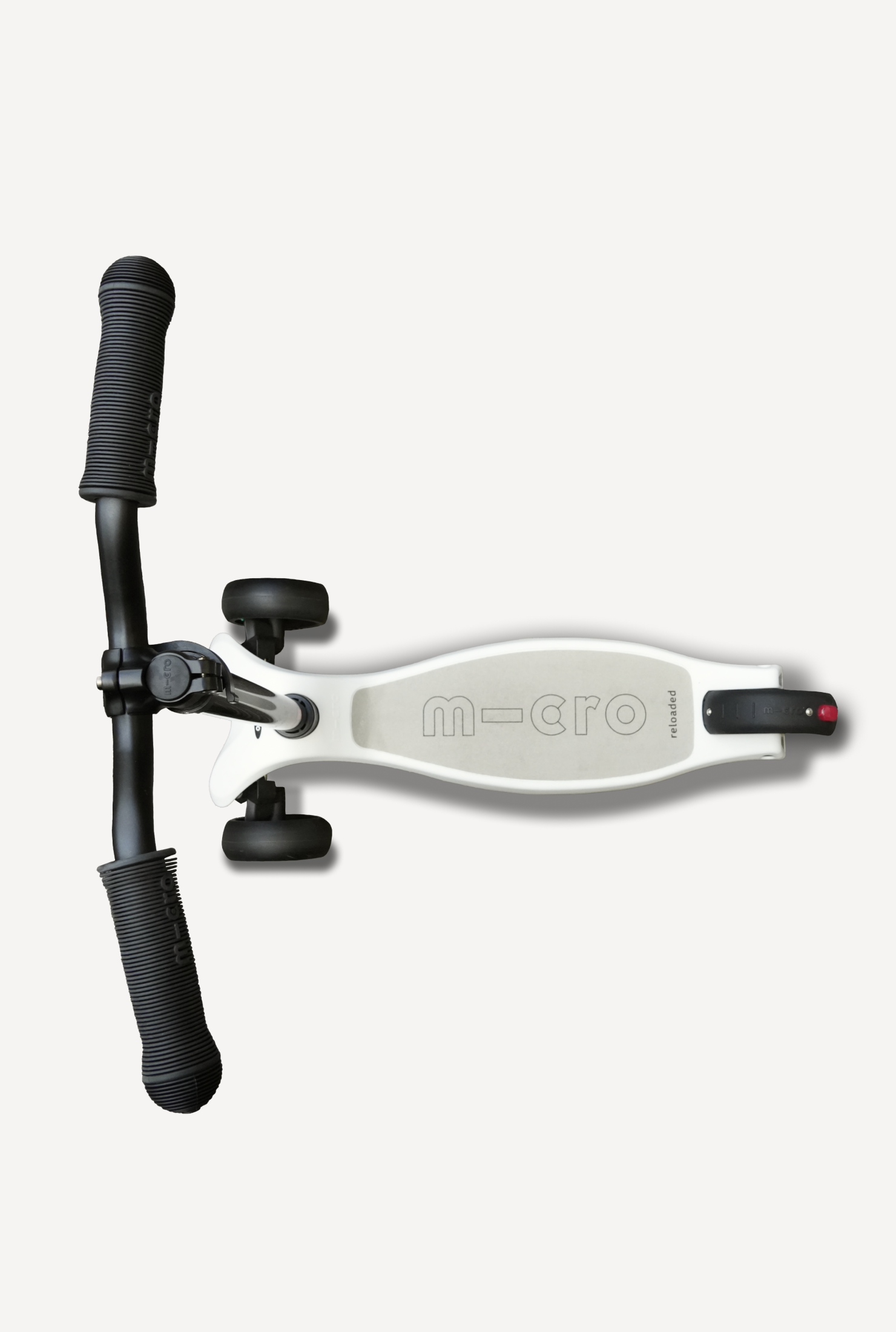 The Kickboard Reloaded uses Micro’s signature lean-to-steer system and three-wheel design for easy control and better balance—perfect for riders of all experience levels. Kickboard-style rides are active and fun, with curving and carving turns that are a bit like riding a skateboard with its longer turns, but with the added control of a T-bar to hold on to. Plus, parking your kickboard couldn’t be more convenient—hop off and it stays standing, waiting for your next ride.