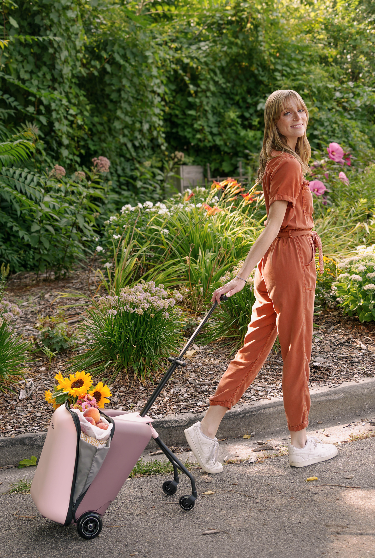 Innovative, multifunctional ride-on cart adding convenience, fun, and fashion to every trip. Equipped with a detachable case with ample storage, a telescopic handle, and a set of foldable, stabilizing wheels.