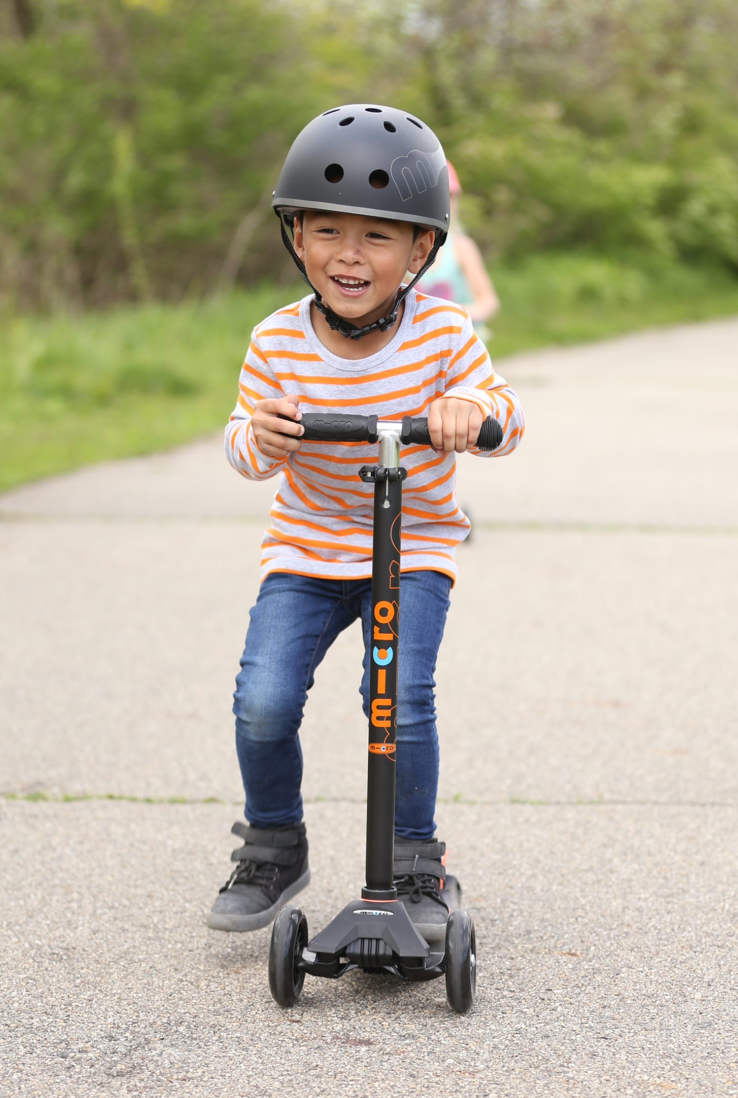 The typical age range for the Micro Maxi Scooter is ages 5-12, though factors such as height and weight play an important factor in determining the right size scooter for your child!
