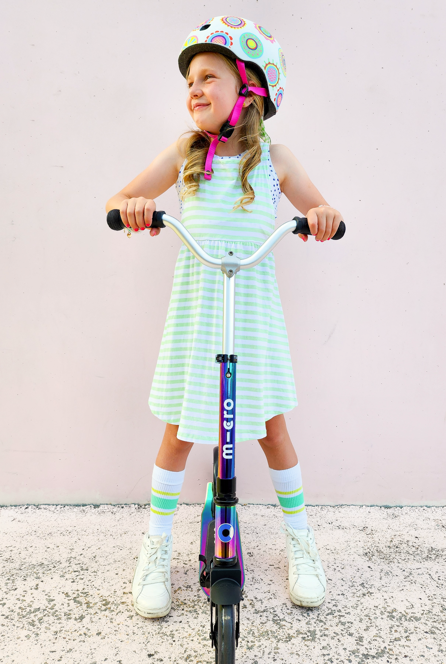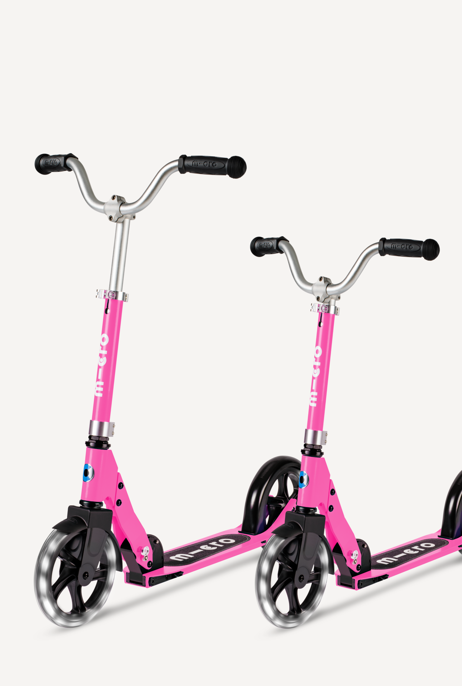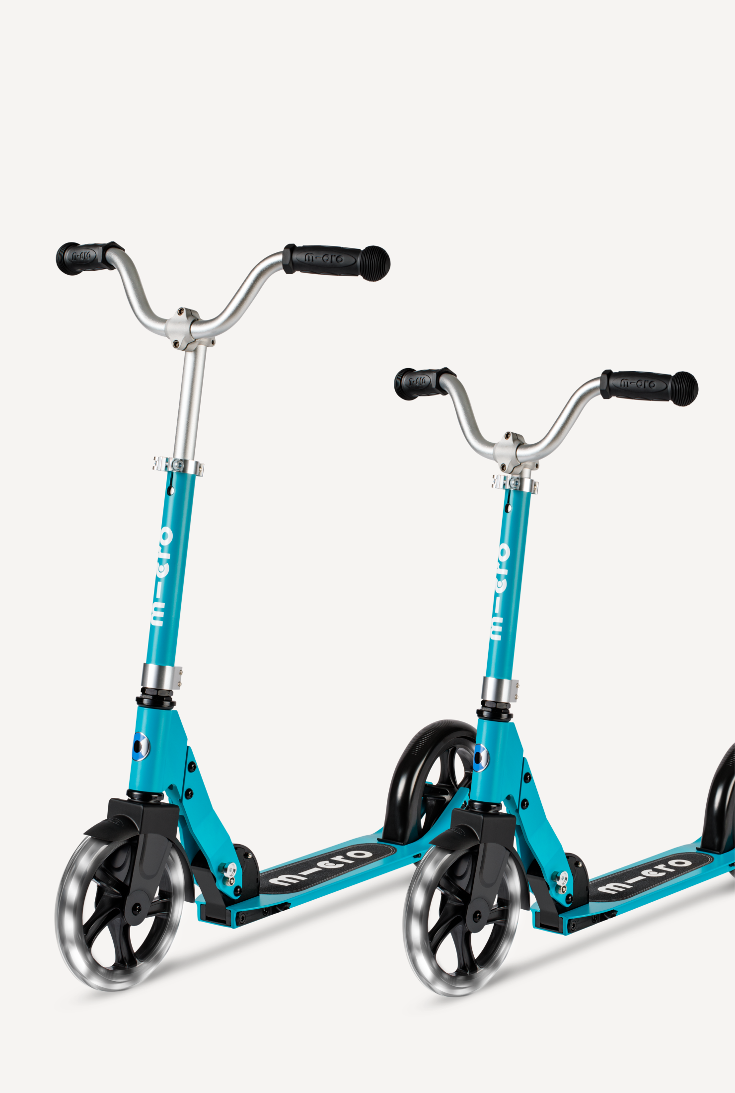 Two-wheel scooters are best for older riders who are ready to handle more balance and control. Micro’s two-wheel scooters all have adjustable T-bars to accommodate older kids, teens, and adults.