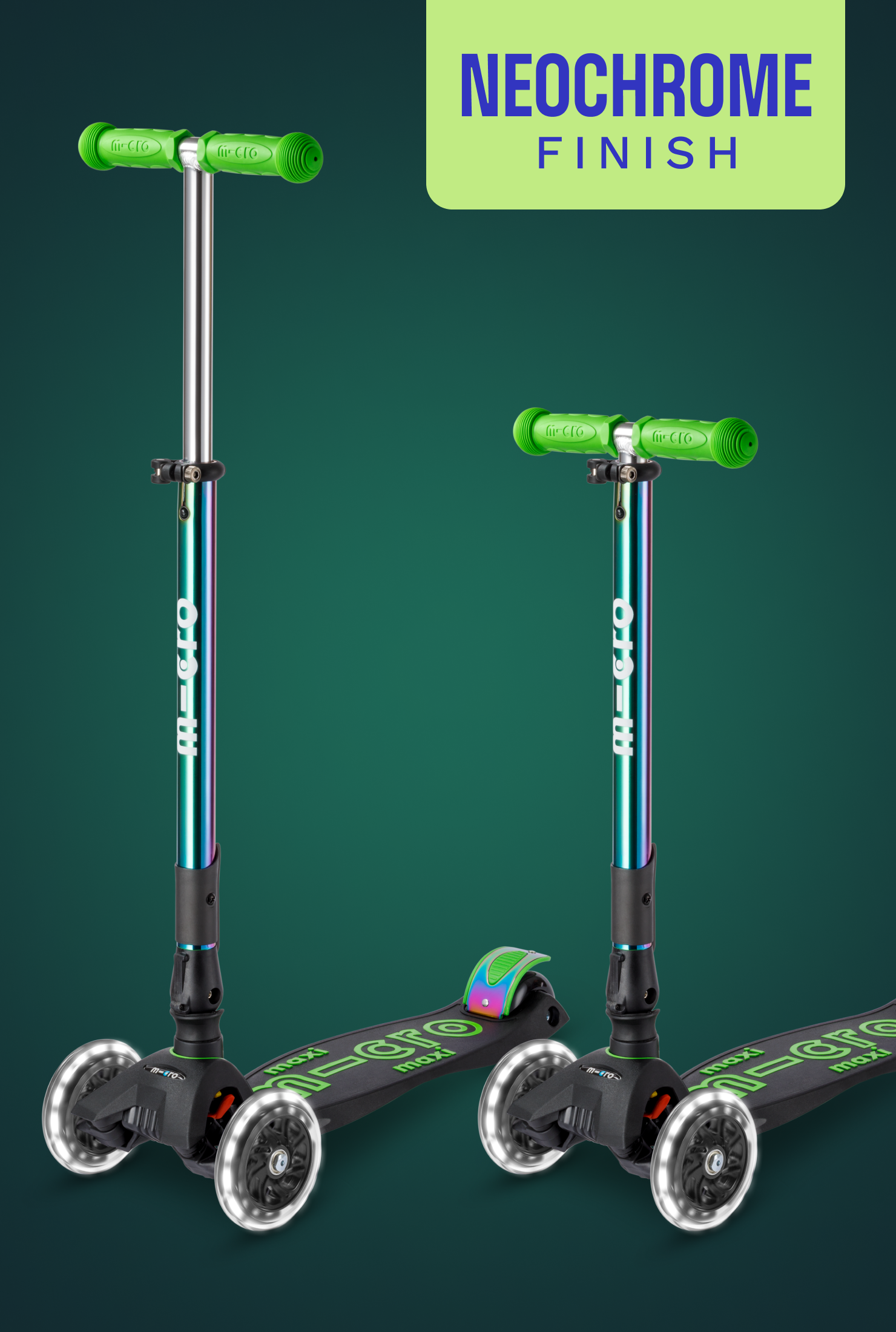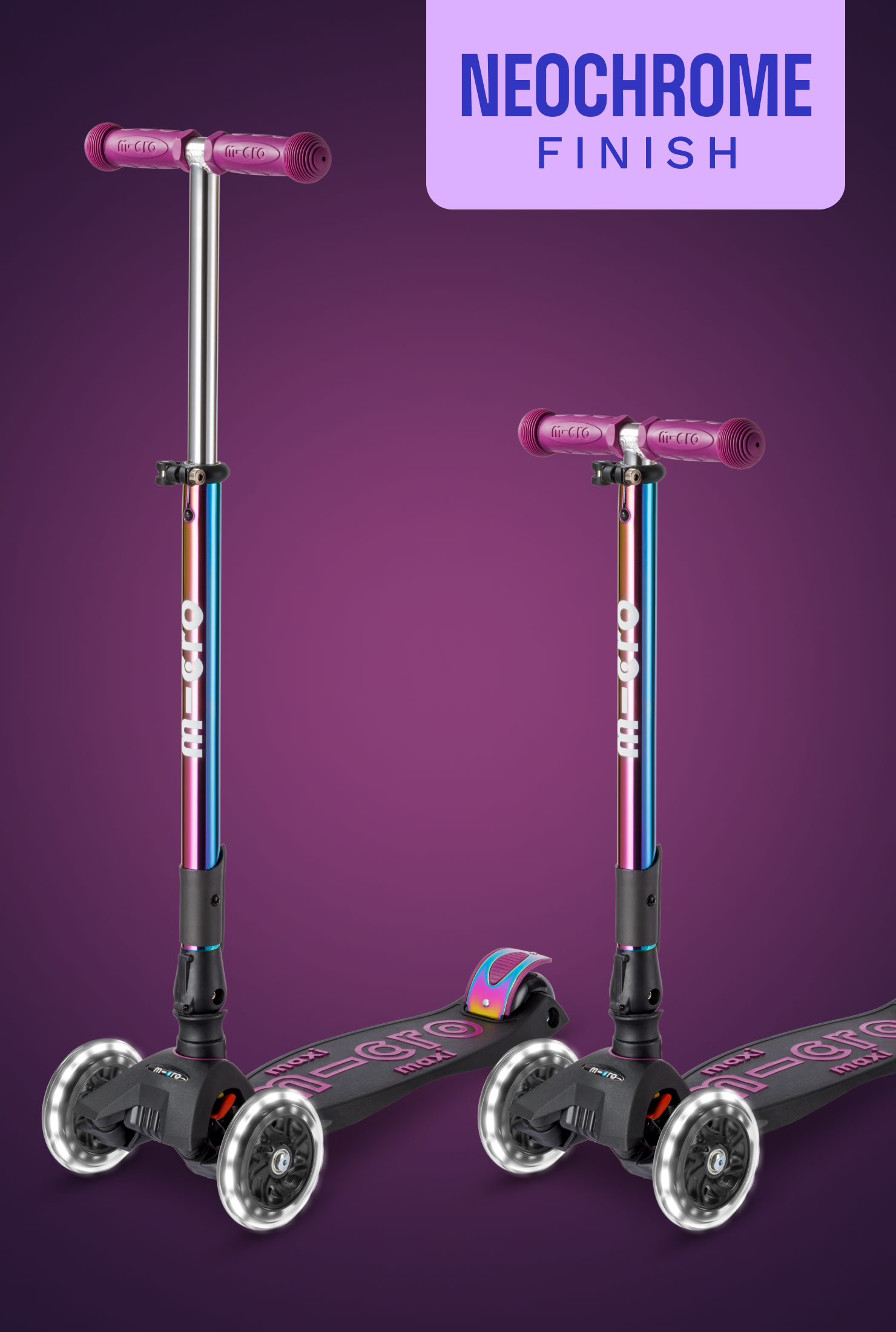 Meet the new, limited-edition Maxi that's already stealing the spotlight on school runs. The Micro Maxi Scooter has been named "Best Kids Scooter" by Parents and The New York Times Wirecutter year after year. Now, this award-winning favorite arrives in a limited-edition, reflective neochrome finish.