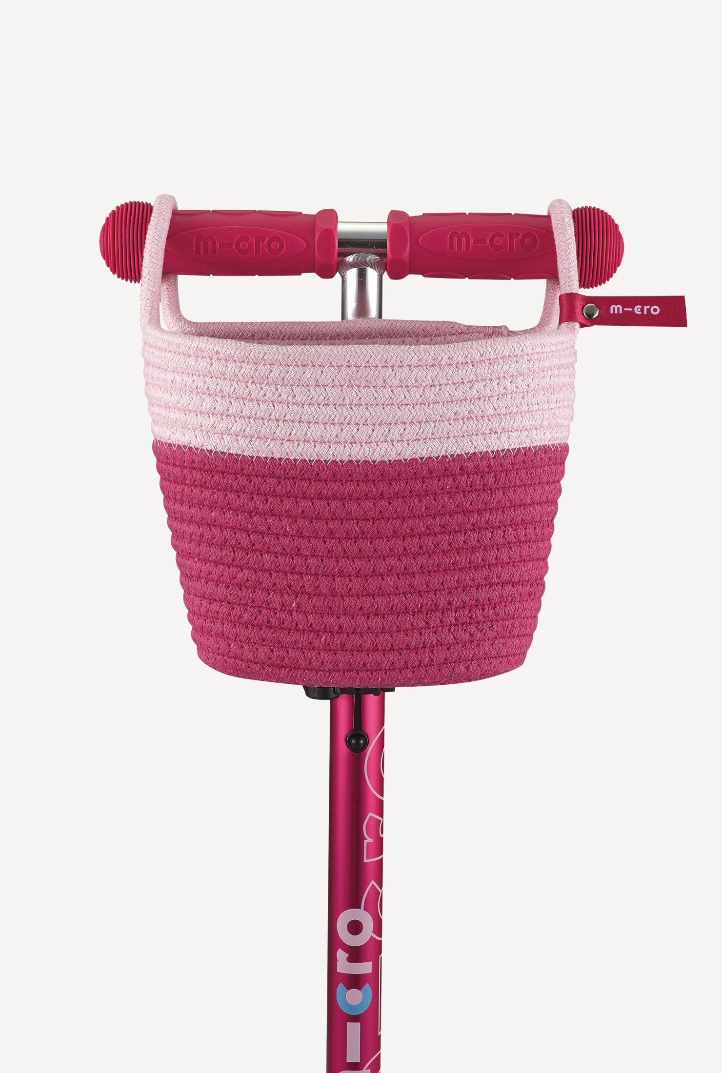 The soft-woven Scooter Basket easily loops over any Micro Scooter’s handlebars to add practical convenience to every scoot.